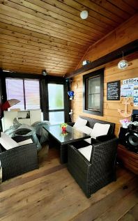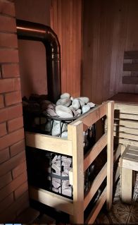 Все сделано с умом и большой любовью к русской бане. Есть душевая, а так же зона отдыха с камином и телевизором.