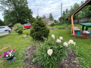Участок большой, ухоженный, имеются плодовые деревья, две большие теплицы, кустарники, раскошные цветники.