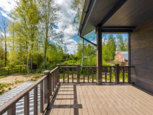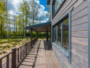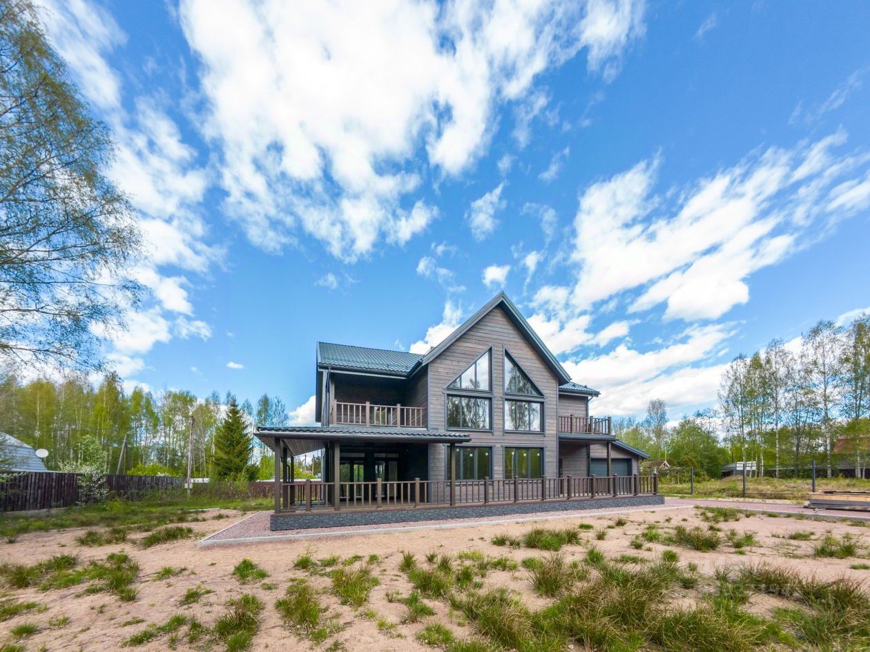 Арт. 106789247 Прекрасный дом с огромными окнами и классной террасой в поселке на берегу Нахимовского озера на участке 20 соток.
