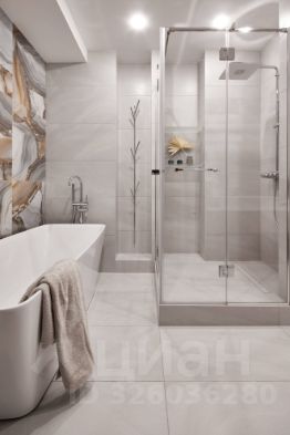 С/У с просторной ванной и душевой ( душевая система Grohe Euphoria SmartControl с эффектом тропического дождя) , площадью 9 м2 .