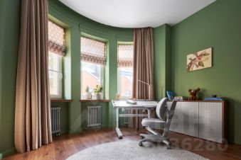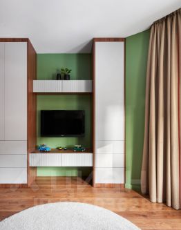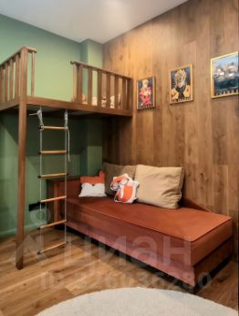 Детская со встроенной мебелью, в которой продуманы отделения для вещей , хранения игрушек и книг, двухэтажная кровать из массива дуба.
