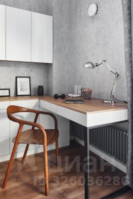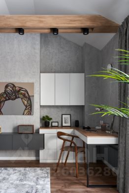 Встроенная мебель для личных вещей и рабочее место . Также имеются доп. места для хранения в нишах.