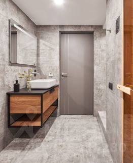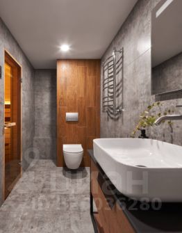 С/У с душевой и финской сауной для 2-3 человек . В отделке сауны использовалось дерево абаши , установлена финская печь Sawo.
