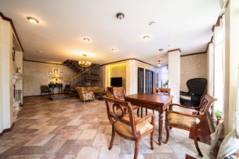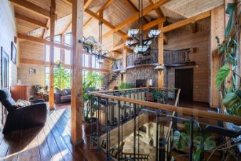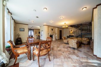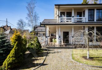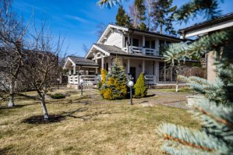 Сам дом, предлагаемый к продаже, реализован в Скандинавским стиле с элементами Шале. Отделка натуральные материалы: древесина различных пород, кора, металл, камень. Пространство продуманное, уютное, эргономичное. Помещения просторные, удобные.