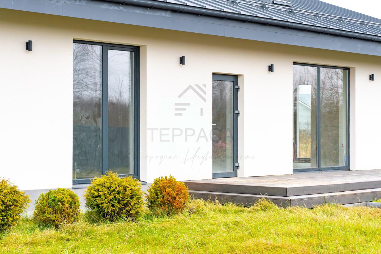 Представляем вашему вниманию стильный, современный новый дом, построенный из теплых керамических блоков, площадью 159 м2 и террасой 45 м2, расположенный на участке 14 соток в пяти минутах от Павловска!