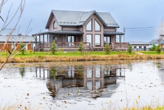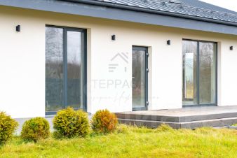 Главная особенность дома - удобная просторная планировка, наличие сауны, ощущение свободы и света, этому способствуют высокие потолки и панорамные окна, стирающие границы между интерьером и природой.