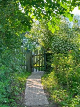 Земельный участок со всех сторон огорожен забором, имеются ворота для заезда авто.