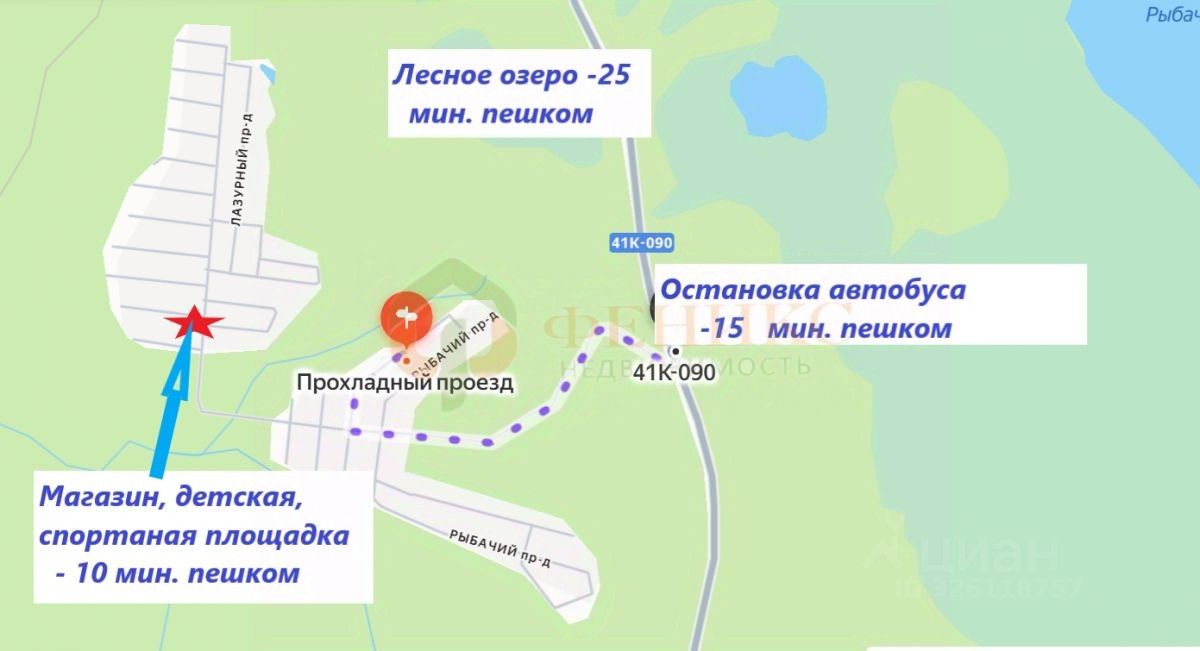 ИНФРАСТРУКТУРА, ТРАНСПОРТ: магазин, детская и спортивная площадка 8-10 минут пешком. Соседи живут постоянно. До участка отличный подъезд по асфальтированной дороге + 200 метров по хорошей грунтовке, зимой дороги регулярно чистятся. Лесное озеро Подходное 20-25 минут пешком, по тропинке через лес, прекрасное Нахимовское озеро. Поселок Цвелодубово 4 км (есть школа), имеется автобусное сообщение с городом, до метро пр. Просвещения, Парнас. От автобусной остановки до дома около 15 минут пешком. От СПБ до Рощино на Ласточке 30 минут, на электричке 1 час. От ж.д. станции Рощино ходят автобусы. Дорога на авто до СПБ займет 45 минут, в 2 км трасса Скандинавия, в 11 км - пос. Рощино.