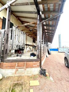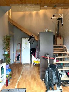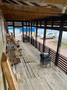Третий этаж без отделки, строительные материалы для утепления, новые окна, радиаторы закуплены.