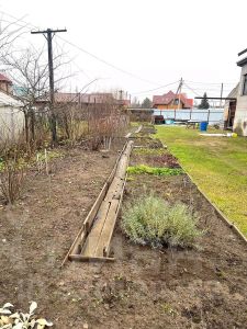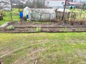 Участок прямоугольной формы, разработан. На участке посажены плодовые деревья, кусты. Есть парник. Разбиты дорожки от ворот к дому, сделана подготовка под мощение, установлен поребрик.