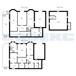 Первый этаж цокольный: высота 2.20 метров , из блоков. В нем расположены : гараж 35 метров, гараж 36 метров, подсобные помещения: кладовые, мастерская, помещения для хранения инвентаря и стройматериалов.