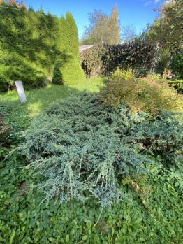 Ландшафтный дизайн , высажены : Туи; Карликовые ели ; Голубые сосны ; Кедры ; Сирень ; Розы; Вязь плакучий; Кустарники; Плодовые деревья.