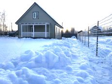 ДОМ 102 кв.м 2025 года постройки, стоит на свайно-винтовом фундаменте( сваи дополнительно залиты бетоном), под крышей из ондулина. Утепление 150 мм, окна - стеклопакеты. Снаружи обшит крашеной имитацией бруса, внутри - вагонка, на полу ламинат. Отапливается дом при помощи электрических теплых полов, установлены температурные датчики, для долгих зимних вечеров дополнительно установлена печь. Водоснабжение от центрального ( зимнего питьевого) водопровода( вода заведена в дом). Горячая вода от электрического бойлера( 60 литров). Установлен септик(По планировке: с улицы вас встречает небольшое открытое крыльцо с навесом + просторная прихожая+ оборудованный сан.узел( ванная, унитаз, раковина, подключение стиральной машины)+ кухня+ просторная и светлая гостиная+ отдельная аккуратная спальня. На втором( мансардном)этаже две уютные изолированные комнаты.