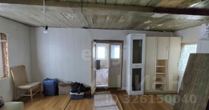 Дом построен из бревна, свайный фундамент и кровля покрыта шифером.