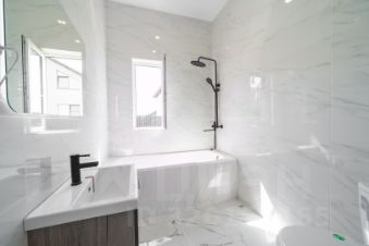 Вся отделка выполнена в светлых тонах. Санузел полностью оснащен сантехникой.