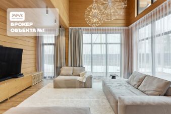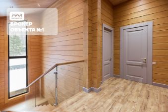Дом выполнен из клееного бруса 200х200. Панорамные, алюминиевые окна Rеhаu, стекла с эффектом зеркала, а так же с защитой от УФ лучей. Встроенный гараж на 2 автомобиля. В прихожей установлен огромный шкаф, сделанный на заказ из качественных материалов.