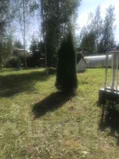 На участке только молодые березки и туя.