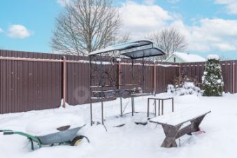 Помимо дома на участке построена баня с дровяной печью и террасой.