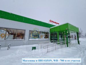 В 7 минутах ходьбы от участка находится магазины Пятёрочка, Лента, аптеки, кафе и пекарни, ПВЗ OZON и WB, остановка общественного транспорта;