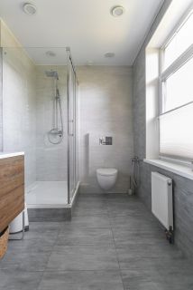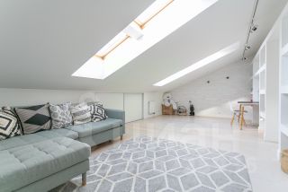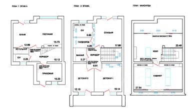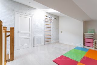 - Большая кухня-гостиная с камином, три спальни, ванная комната, два санузла, гардеробная, мансардный этаж с детской и рабочей зоной.