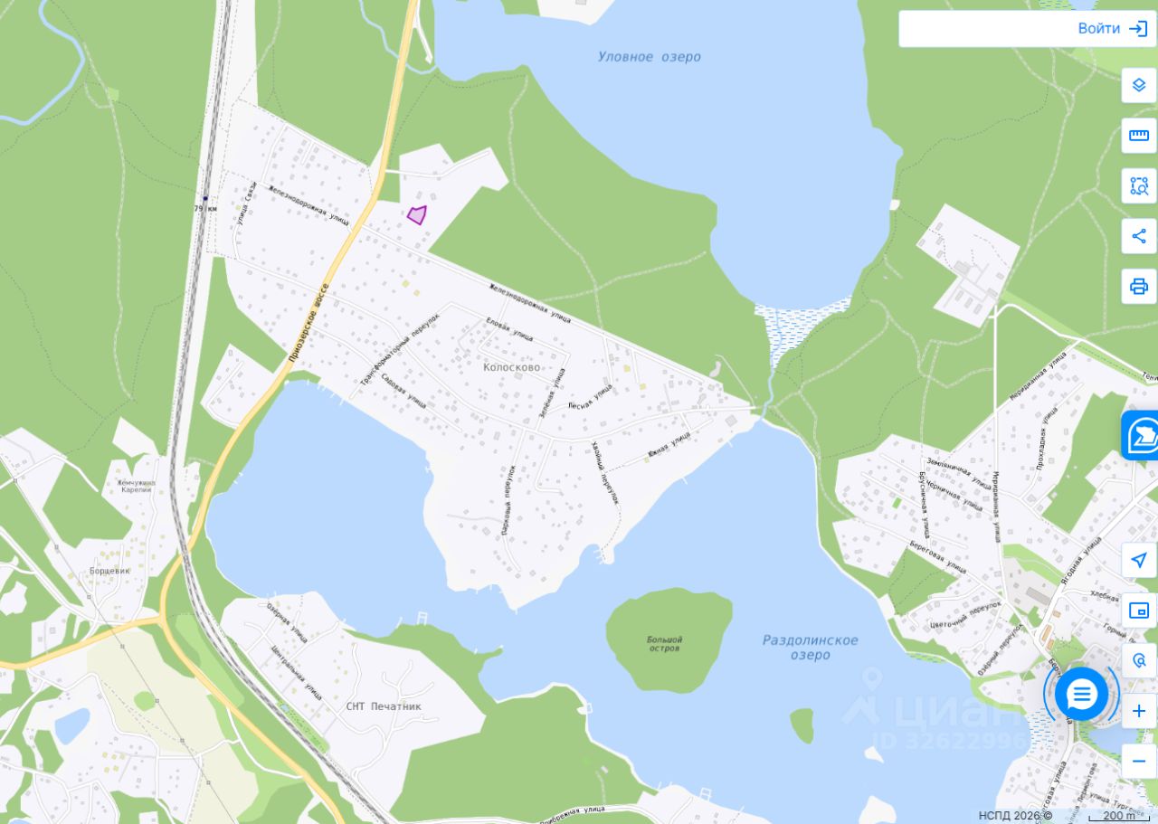 Участок в стародачном поселке между двух озер. Асфальт по границе участка. На участке монолитные фундаменты под дом и хозблок. Полный комплект проектов на фундамент, дом (включая внутреннюю отделку) и ландшафтный дизайн. До ж/д станции Колосково (79 км) 10 мин пешком. На машине до Сосново - 10 мин, курорта Игора - 15 мин, КАД - 50 мин (66 км по Новоприозерскому шоссе.