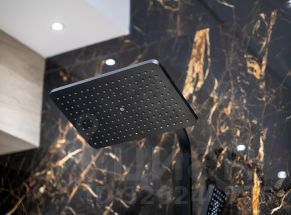 Полы - фактурный керамогранит, в спальнях - инженерная доска премиум-качества.