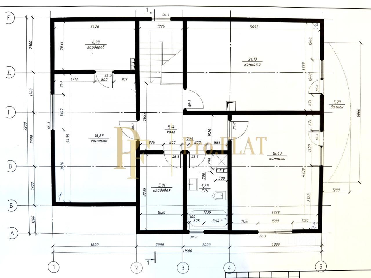 - Тамбур (2,63 м), холл (15 м).
