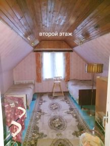 На первом этаже комната с печью(печь топится с кухни), кухня и веранда-прхожая.