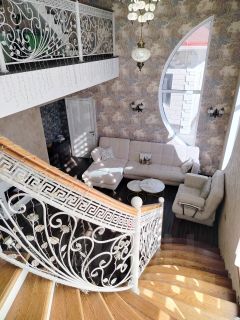 На 2 этаже: главная мастер спальня с гардеробной и выходом на террасу - 20 кв. м., вторая огромная спальня - 20 кв. м. и санузел.
