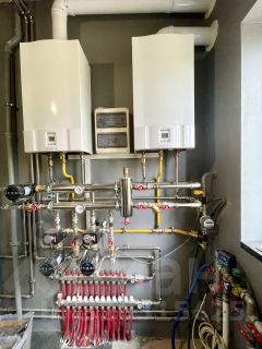 Коммуникации: Скважина с системой очистки воды. Канализация локальная. Теплоснабжение газовое, 2 котла WOLF по 24 кВт, бойлер 200 л, теплый пол по всей площади первого этажа включая гараж. Контурная подсветка зон, все элементы освещения автоматизированы. Электричество 25 кВт. На первом этаже система кондиционирования Haier. Управление через Wi-Fi, функция очистки воздуха. На втором этаже система мультисплит.