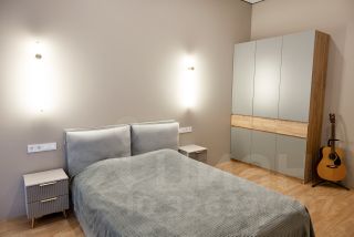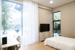 Главная мастер-спальня со своей гардеробной и санузлом. Жемчужина- отдельно стоящая ванна у панорамного окна.