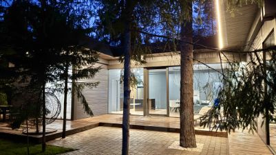 Просторный одноэтажный дом площадью 178 м² , построен из бруса по технологии фахверк. Панорамные окна в пол , потолки высотой 3,5 метра , в помещениях много света и воздуха, дизайнерский ремонт, продумано всё до мелочей.