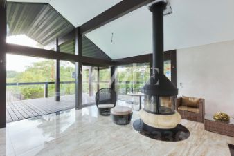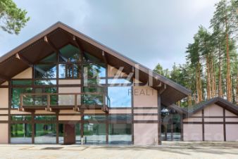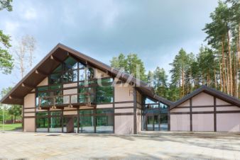 Уникальная архитектура: Основной дом построен по редкой фахверковой технологии с панорамным остеклением.
