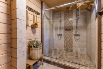 Парная, душевая на два душа, комната отдыха с камином и большим удобным диваном