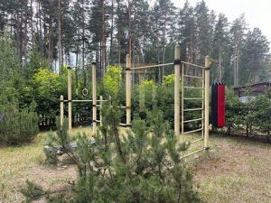 Оборудована спортивная площадка со шведской стенкой, скамейкой и боксерской грушей