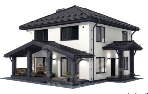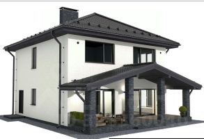 Дом у леса с панорамными окнами и большой террасой