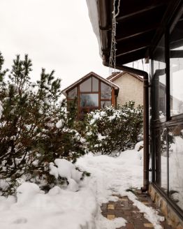 В доме есть сауна ,бассейн, бильярдный зал, зимний сад, кабинет, отдельная хоз.комната,3 спальни(из них одна мастер-спальня со своим сан.узлом), гостиная, огромная кухня с окном и отдельная столовая с панорамными окнами.
