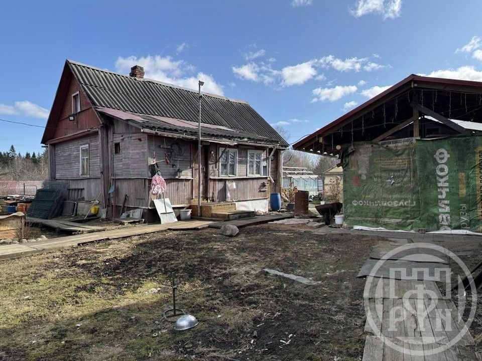 На участке находится крепкий бревенчатый дом 1956 года постройки, общей площадью 61 кв.м. В доме есть веранда, кухня и три комнаты. Отопление осуществляется с помощью печи, а водоснабжение обеспечивается скважиной и колодцем с технической водой. Электричество предоставляется мощностью 5 кВт, а газ подведен по границе участка. Туалет находится в пристройке к веранде и на улице. Состояние дома оценивается как удовлетворительное, однако требуется косметический ремонт.