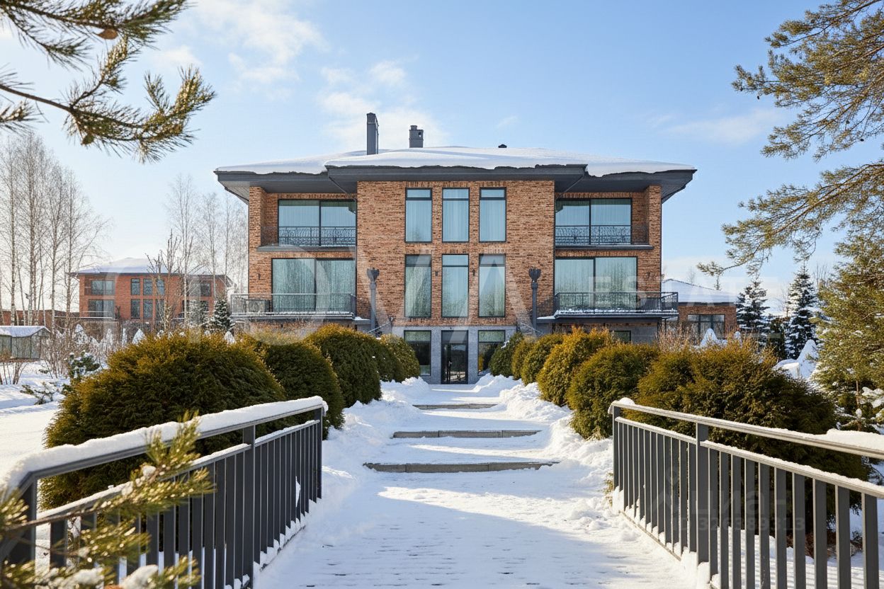 Ансамбль построек общей площадью 992 м², где монументальная надежность встречается с панорамными пейзажами и безусловным комфортом. Все строения возведены из поризованного кирпича 2NF с облицовкой немецким клинкерным кирпичом MUHR на монолитном фундаменте, что гарантирует долговечность, тепло и тишину. В отделке использовались качественные материалы, бытовая техника и мебель известных ведущих брендов: Miele, Liebher, Rolf Benz, Natuzzi.