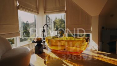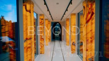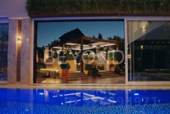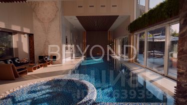 Предлагается уникальная резиденция общей площади 1 200 кв. м, полностью готовая для проживания и эргономично зонирована. Просторная кухня с малой гостиной оборудована немецкой техникой. Большая столовая зона с панорамным видом на бассейн, каминная зона-переговорная. Восемь спален, из них три - просторные детские. Семь ванных комнат, три гардеробные, кабинет. Высота потолков достигает 12 метров. В отделке использованы дорогие породы дерева, натуральный камень, оникс, премиальные отделочные материалы. Окна Schco с полным открытием - в зоне бассейна.