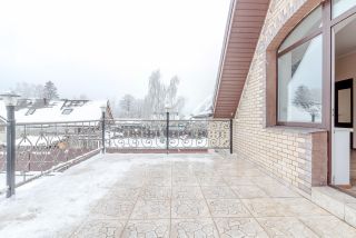 Основной дом с большими панорамными окнами, построен из газобетонных блоков,утеплен, и облицован кирпичом, кровля - металлочерепица, фундамент - монолитная плита,