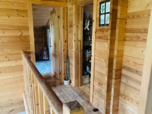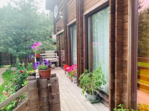 Жилой дом общей площадью 144 м, двухэтажный. Первый этаж: кухня-гостиная 29 м?, комната 11кв.м, санузел с душевой 7,4 м и сауной 4,7 м оборудованной финской печью Harvia, выход на просторную террасу, красивый удобный лестничный проем со вторым светом. Второй этаж: три спальни (9 м+13 м+1м), две из которых с выходом на симпатичные балкончики, санузел с ванной 3,6 м. В доме вода из собственной скважины глубиной 33 м, а так же на территории участка колодец с технической водой для полива. Участок 991кв.м - ровный, ухоженный, в окружении сосен, елей и березок.