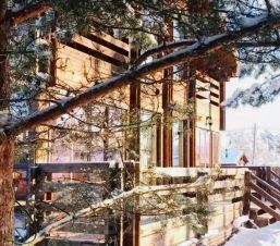 Коттедж построен по финской технологии из двух слоев бруса толщиной 45мм каждый с минеральным утеплителем толщиной 130 мм. между ними.