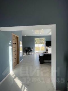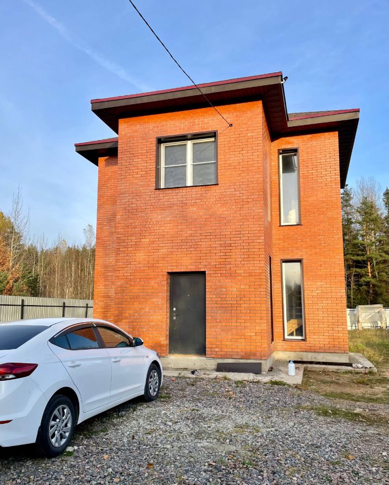 Продается современный двухэтажный дом из кирпича, построенный в 2025 году. Просторная кухня с современной встроенной техникой и обеденной зоной, оформленная в светлых тонах. На первом этаже также расположена функциональная гостиная с большим окном, обеспечивающим естественное освещение.