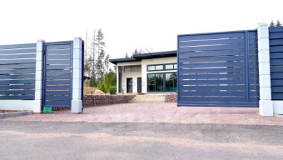 По периметру огорожен металиическим забором на бетонных столбах. Въездная группа оснащена откатными воротами с автоматикой.