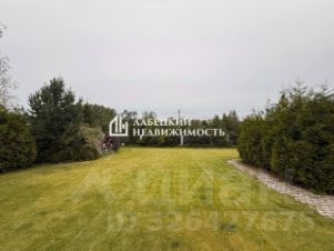 -На участке ландшафтный дизайн, озеленение по всему участку высокими елями и туями, рулонный газон