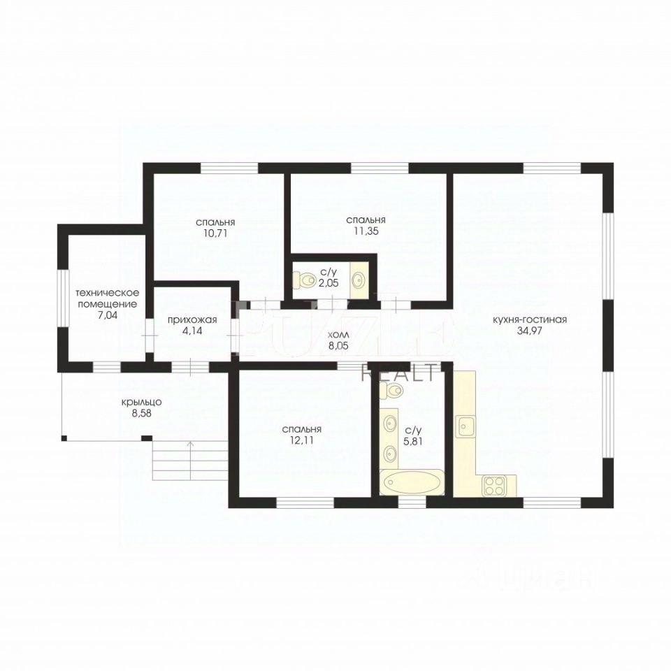 фундамент - монолитные ж/б сваи, утепление пола - 200 мм