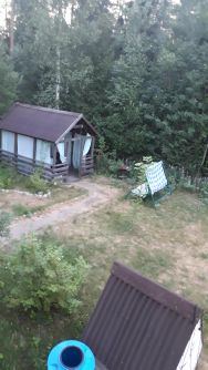 Беседка в дальнем углу участка, окружённая лесом