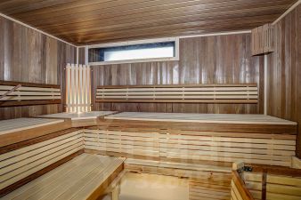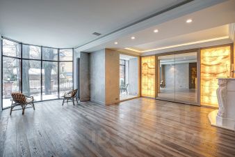 На 0 этаже находится спа-зона, где все внимание привлекает большое джакузи на фоне стены из оникса, рассчитанное на большое количество человек. Также имеется качественно сделанная сауна, зона для телевизора, диванов и бара, санузел, отдельная зона с душем, комната для размещения постирочной и два технических помещения.