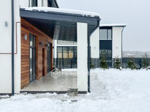 Просторные помещения с высотой потолков на первом этаже - 3,2 м, на втором этаже 3-3,8м. В доме панорамные двухкамерные окна Rehau. Из трех помещений организован выход на просторную веранду с прилегающей лужайкой.